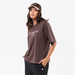 Remera manga corta de mujer, confeccionada en tejido de punto de algodón 100%. Es de calce COMFORT, posee escote redondo, mangas cortas, estampa Exclusiva "Fila Sports Club" en contratono y parche F-box en la espalda, debajo del cuello.