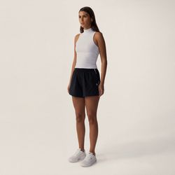 Remera musculosa femenina confeccionada en tejido de poliamida y elastano acanalado. El ajuste regular se complementa con un cuello doble alto y sisas rematadas con costuras al bies. La firma está resaltada por el parche F-Box sur ton en la parte posterior, aportando un toque en línea con la elegancia dinámica y el estilo deportivo del Gran Turismo italiano.