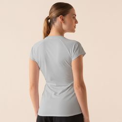Remera de mujer confeccionada en poliéster reciclado con elastano. Diseño entallado con manga corta raglán y cuello redondo. Producto ecológico diseñado para causar un menor impacto en el medio ambiente. Su tejido contiene las tecnologías UV PROTECTION, que ofrece protección solar SPF 50+ frente a los rayos UVA y UVB, y FLOW, que proporciona un secado rápido, manteniendo el cuerpo a la temperatura ideal para practicar deporte. Parche F-Box aplicado en la parte delantera superior izquierda.